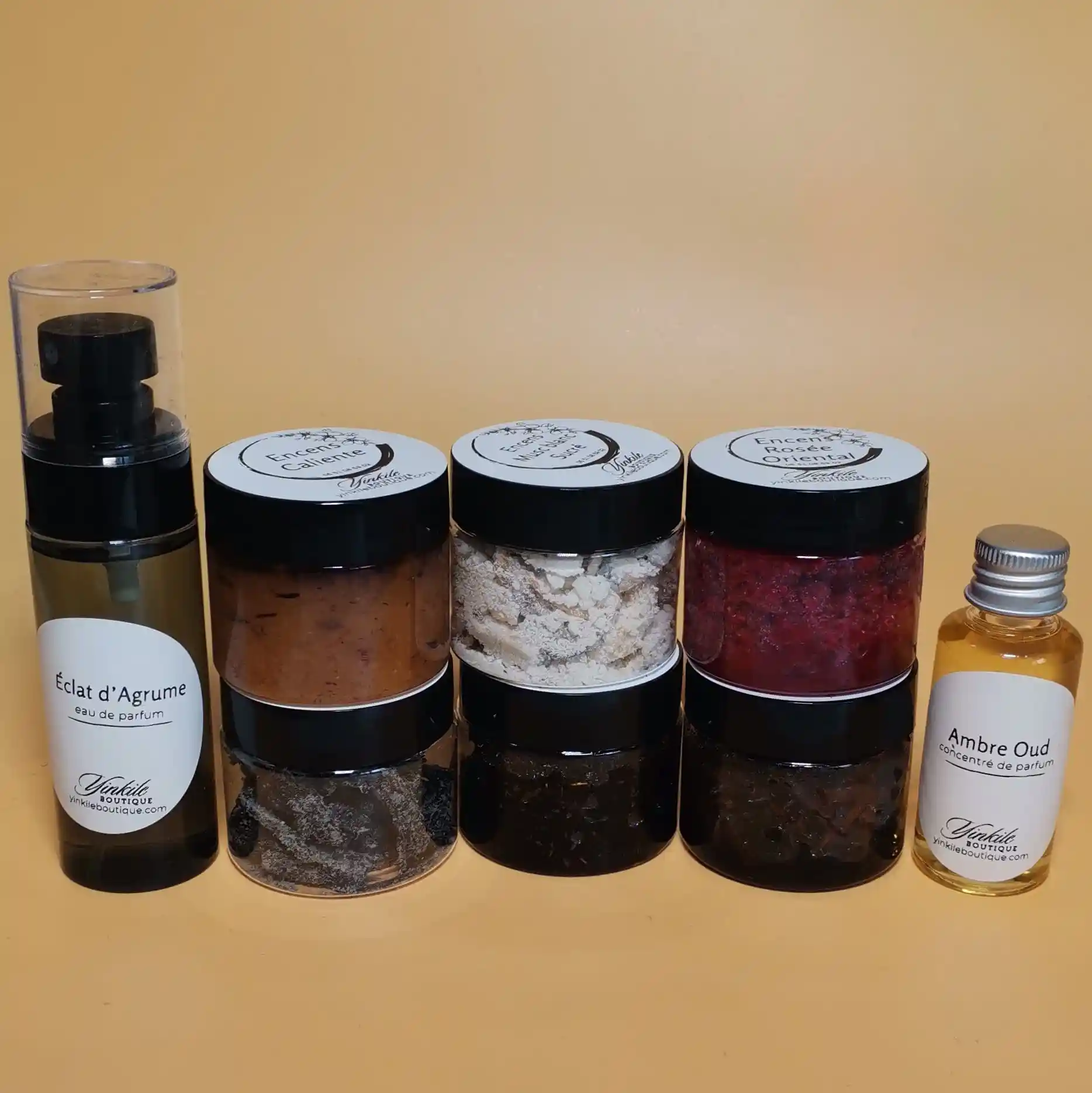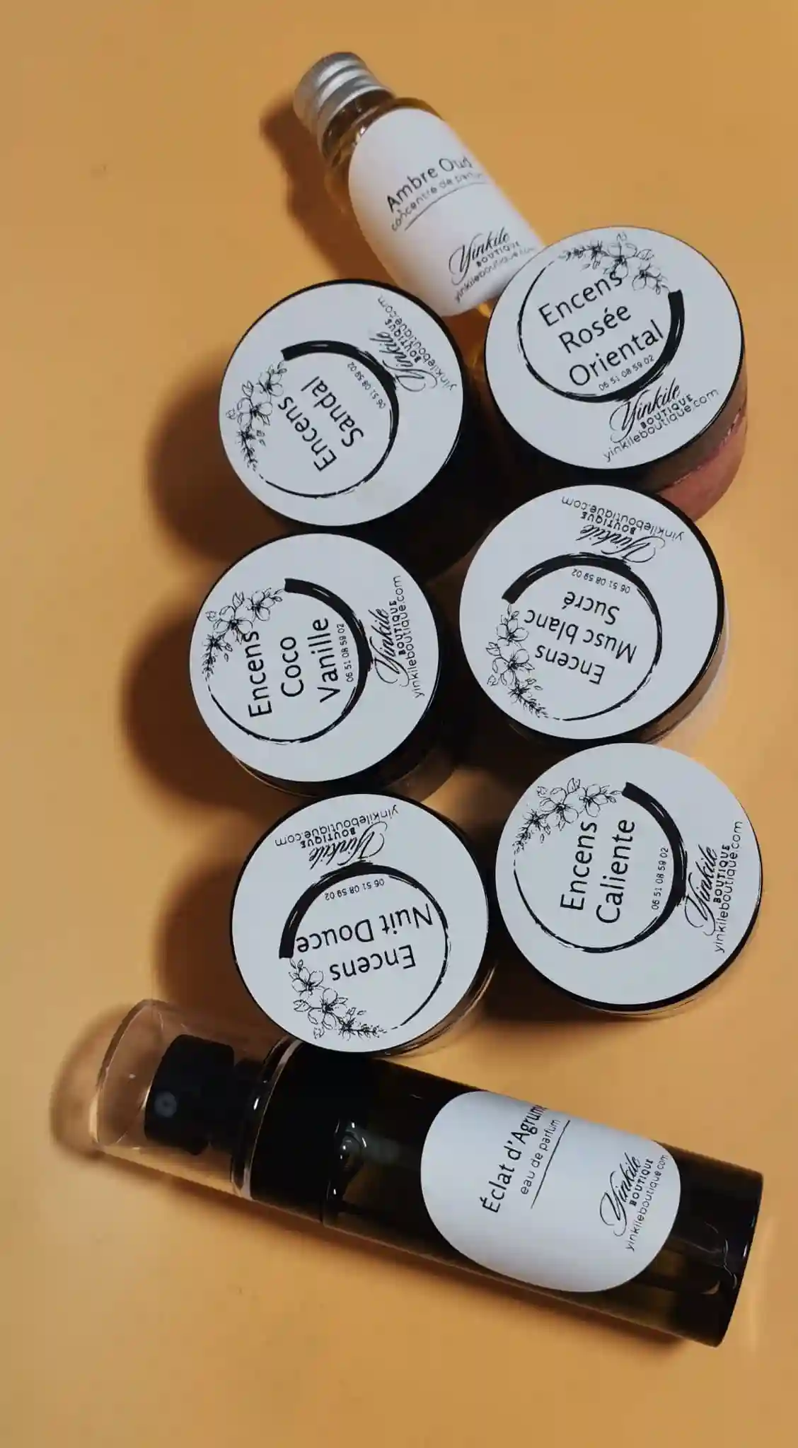 50ml par pot d’encens, 60ml le flacon de parfum, 30 ml le concentré de parfum